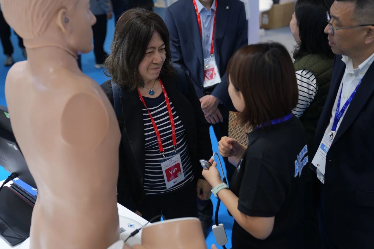 Guo Xiangping, secretary-general of Beijing Association for Medical Education, visited the Tellyes exhibition area and highly praised Tellyes for this exhibition. She also emphasized the breakthroughs of Tellyes in the fields of “Physiologically-driven Technology” and “AI-based Virtual Patient”, calling it “setting a new benchmark for clinical medical education”.